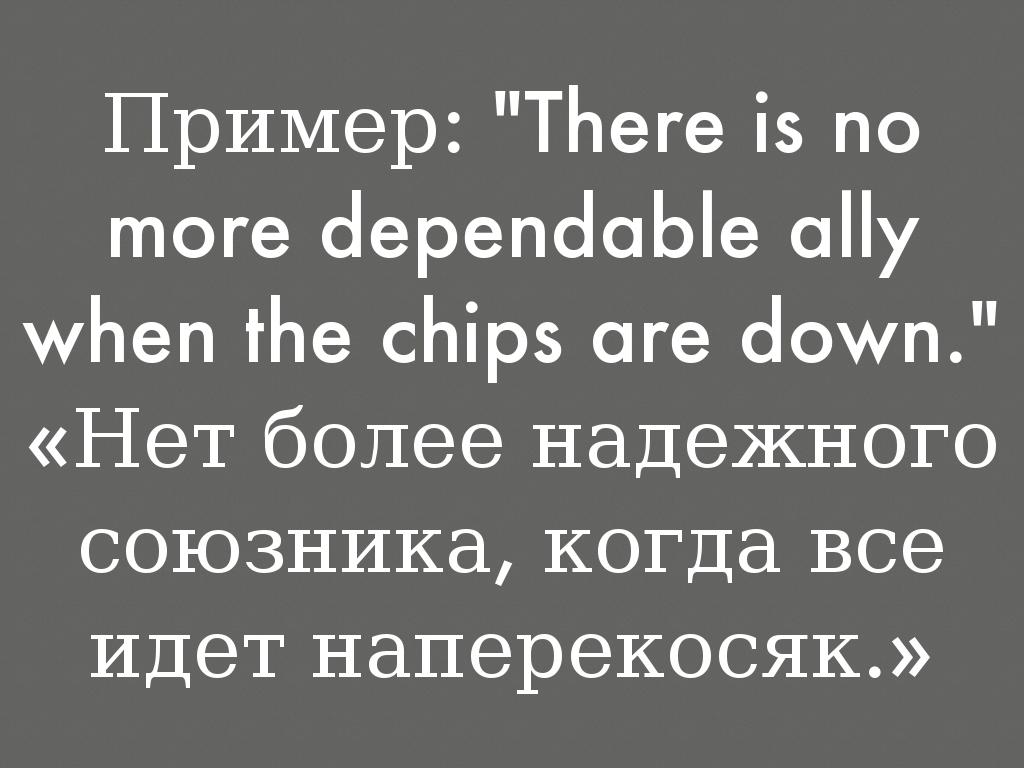 Пример: "There is no more dependable ally when the chips are down."