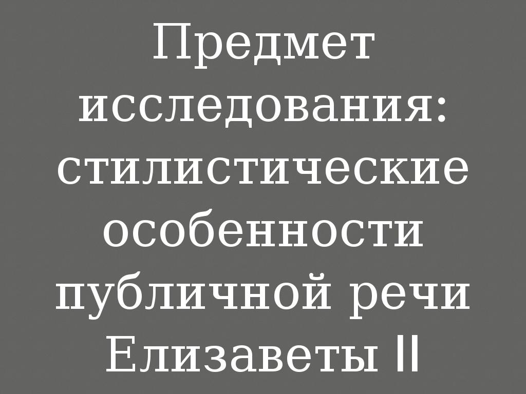 Предмет исследования: стилистические особенности публичной речи Елизаветы II