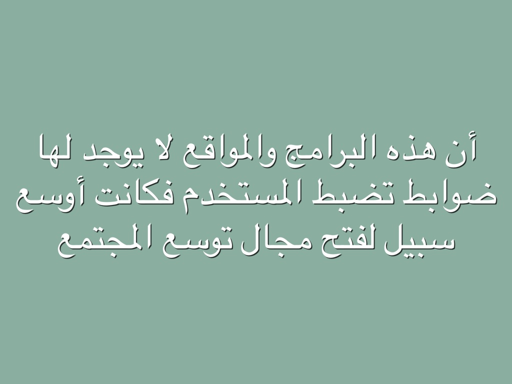 أن هذه البرامج والمواقع لا يوجد لها ضوابط تضبط المستخدم فكانت أوسع سبيل لفتح مجال توسع المجتمع