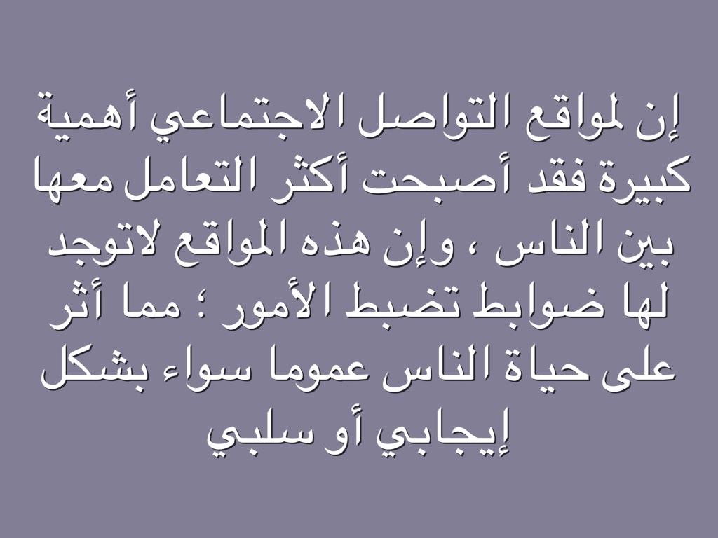 إن لمواقع التواصل الاجتماعي أهمية كبيرة فقد أصبحت أكثر التعامل معها بين الناس ، وإن هذه المواقع لاتوجد لها ضوابط تضبط الأمور ؛ مما أثر على حياة الناس عموما سواء بشكل إيجابي أو سلبي