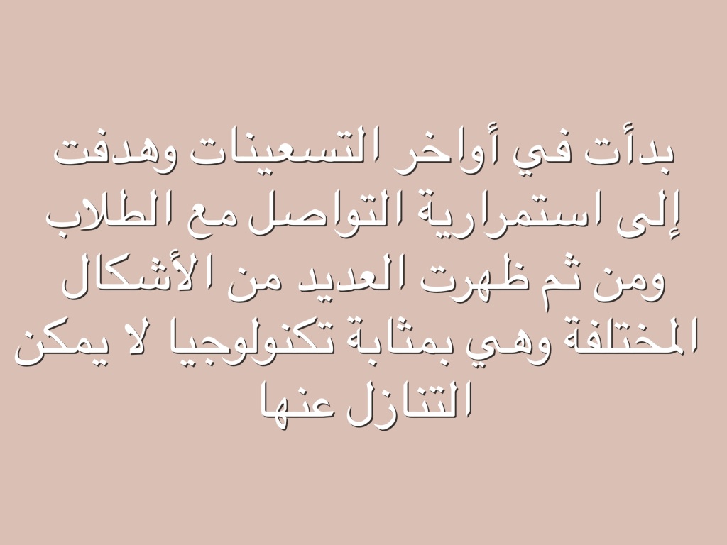 بدأت في أواخر التسعينات وهدفت إلى استمرارية التواصل مع الطلاب ومن ثم ظهرت العديد من الأشكال المختلفة وهي بمثابة تكنولوجيا لا يمكن التنازل عنها