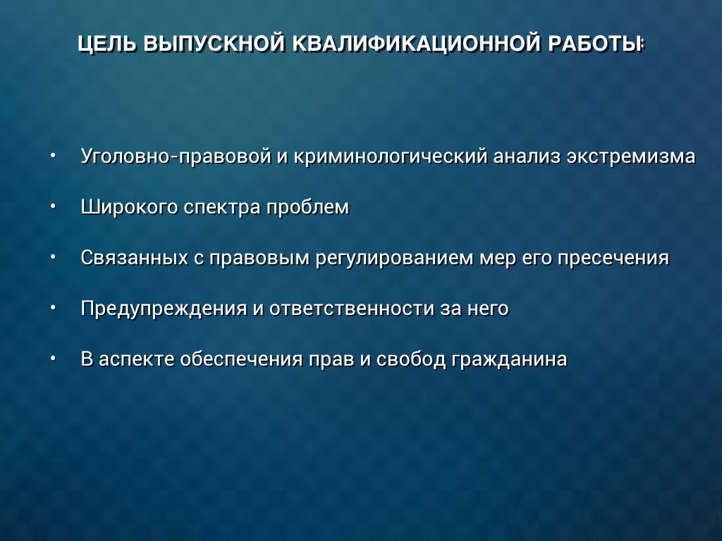 ЦЕЛЬ ВЫПУСКНОЙ КВАЛИФИКАЦИОННОЙ РАБОТЫ: