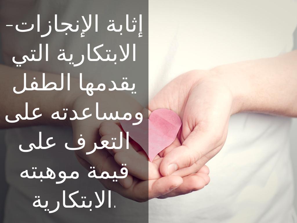 -إثابة الإنجازات الابتكارية التي يقدمها الطفل ومساعدته على التعرف على قيمة موهبته الابتكارية.