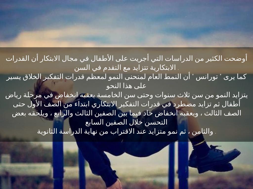 أوضحت الكثير من الدراسات التي أجريت على الأطفال في مجال الابتكار أن القدرات الابتكارية تتزايد مع التقدم في السن .