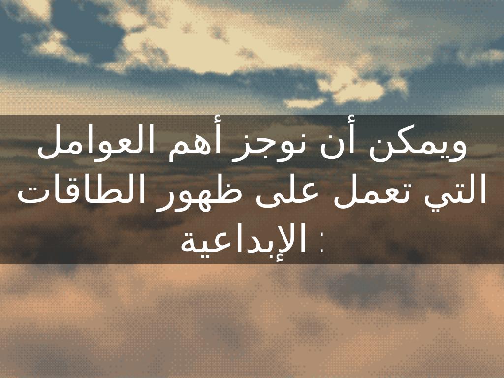 ويمكن أن نوجز أهم العوامل التي تعمل على ظهور الطاقات الإبداعية :