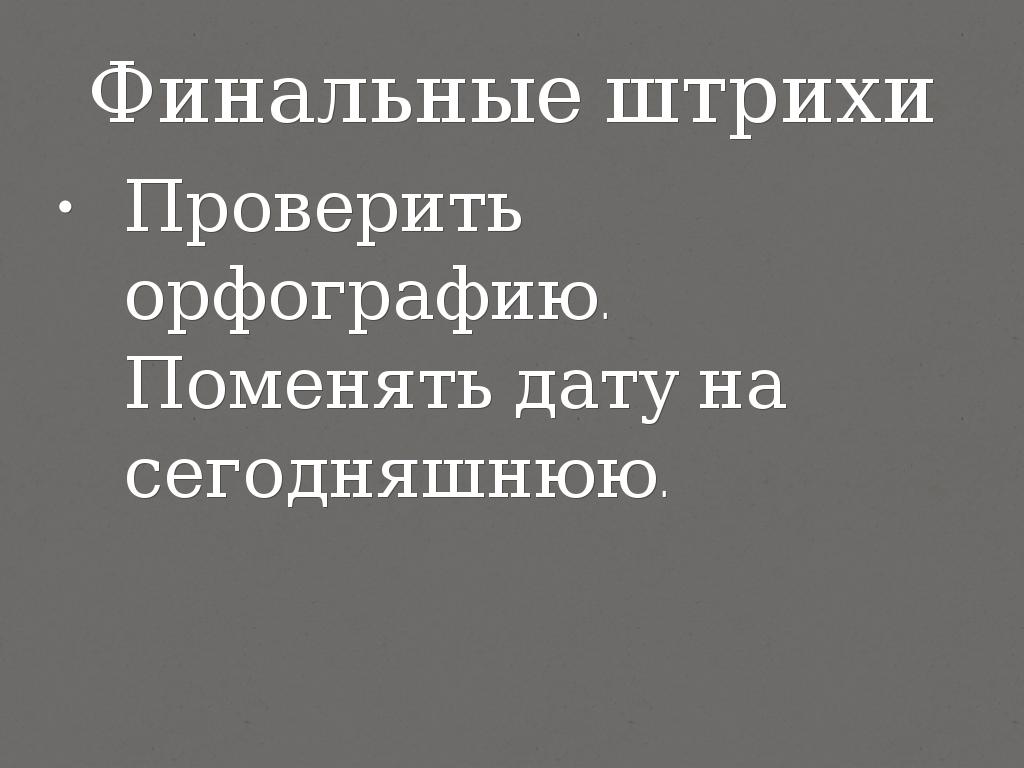 • Проверить орфографию. Поменять дату на сегодняшнюю.