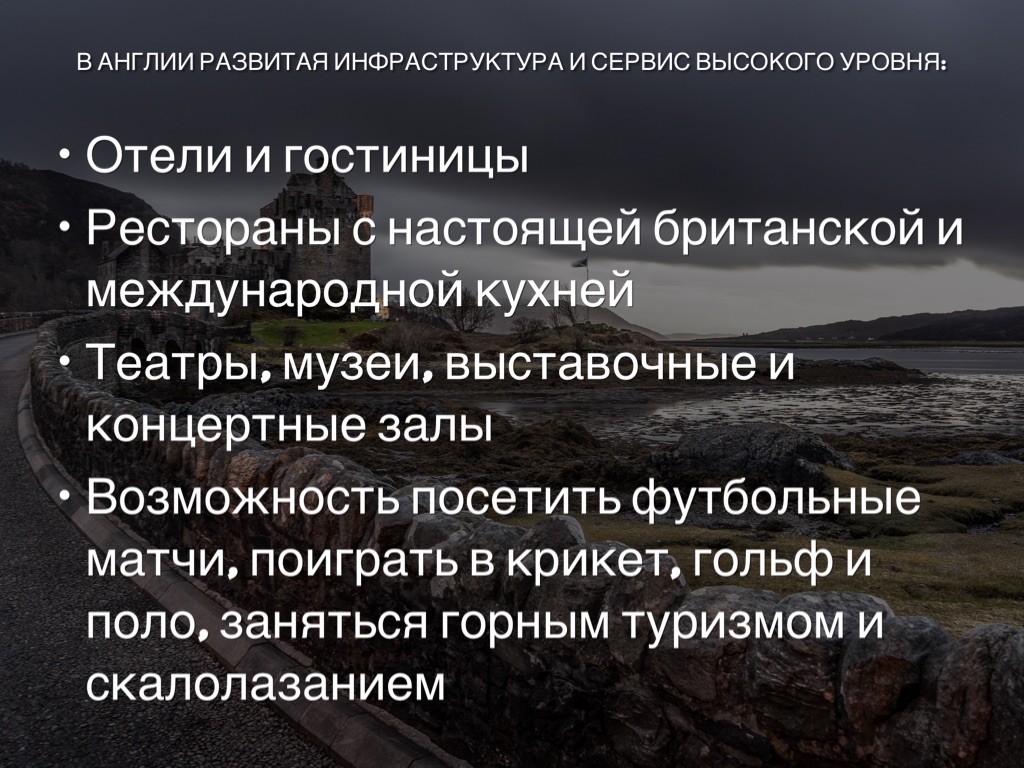 В АНГЛИИ РАЗВИТАЯ ИНФРАСТРУКТУРА И СЕРВИС ВЫСОКОГО УРОВНЯ: