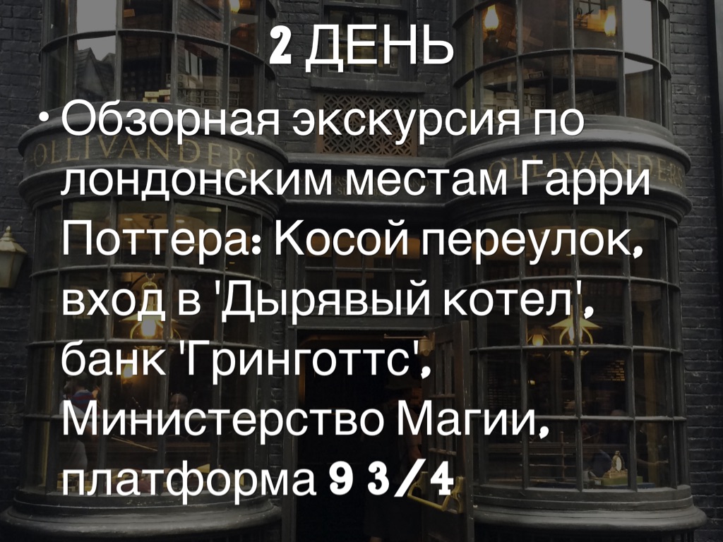 - Обзорная экскурсия по лондонским местам Гарри Поттера: Косой переулок, вход в 'Дырявый котел', банк 'Гринготтс', Министерство Магии, платформа 9 3/4