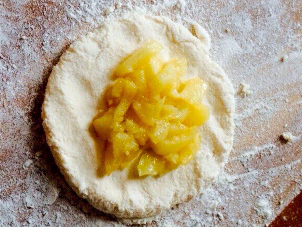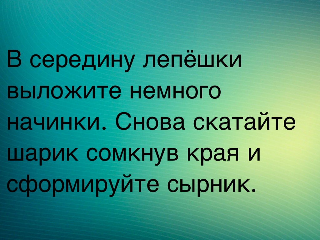 В середину лепёшки выложите немного начинки. Снова скатайте шарик сомкнув края и сформируйте сырник.