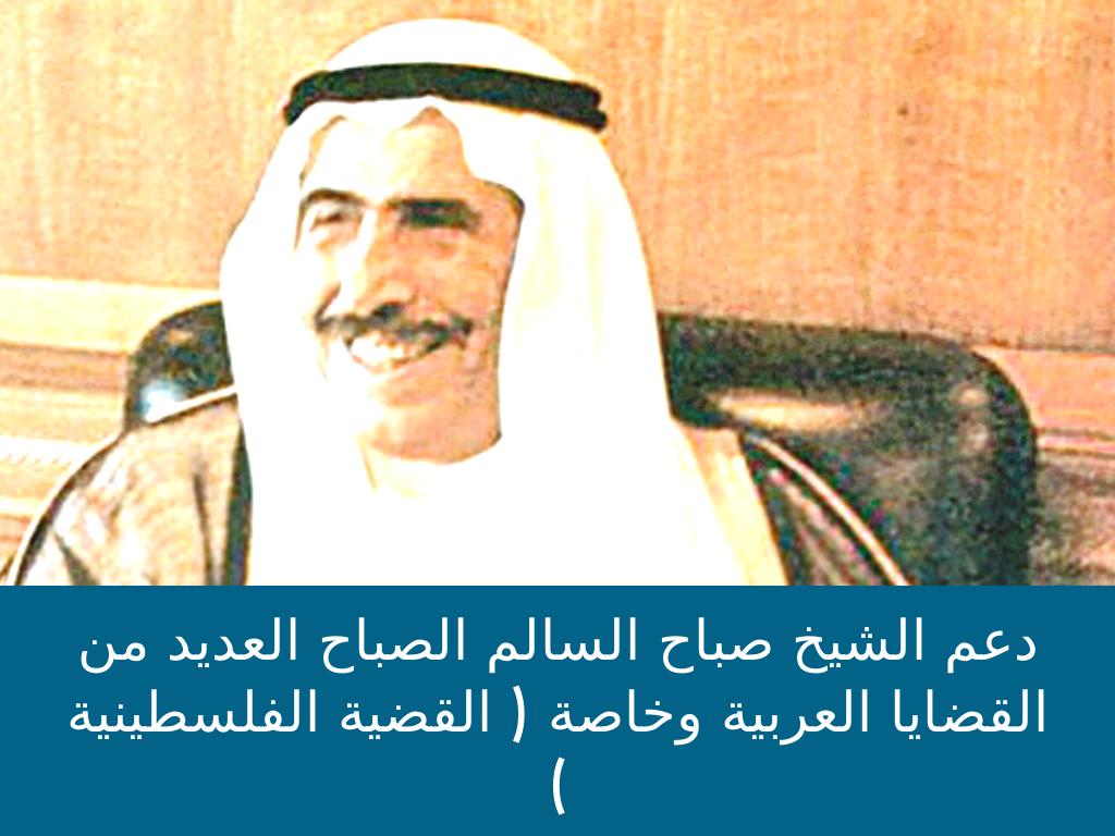 دعم الشيخ صباح السالم الصباح العديد من القضايا العربية وخاصة ( القضية الفلسطينية )