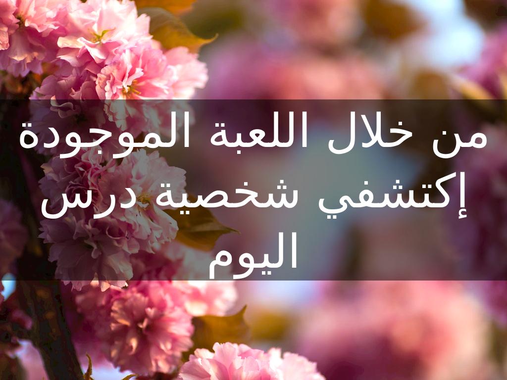 من خلال اللعبة الموجودة إكتشفي شخصية درس اليوم