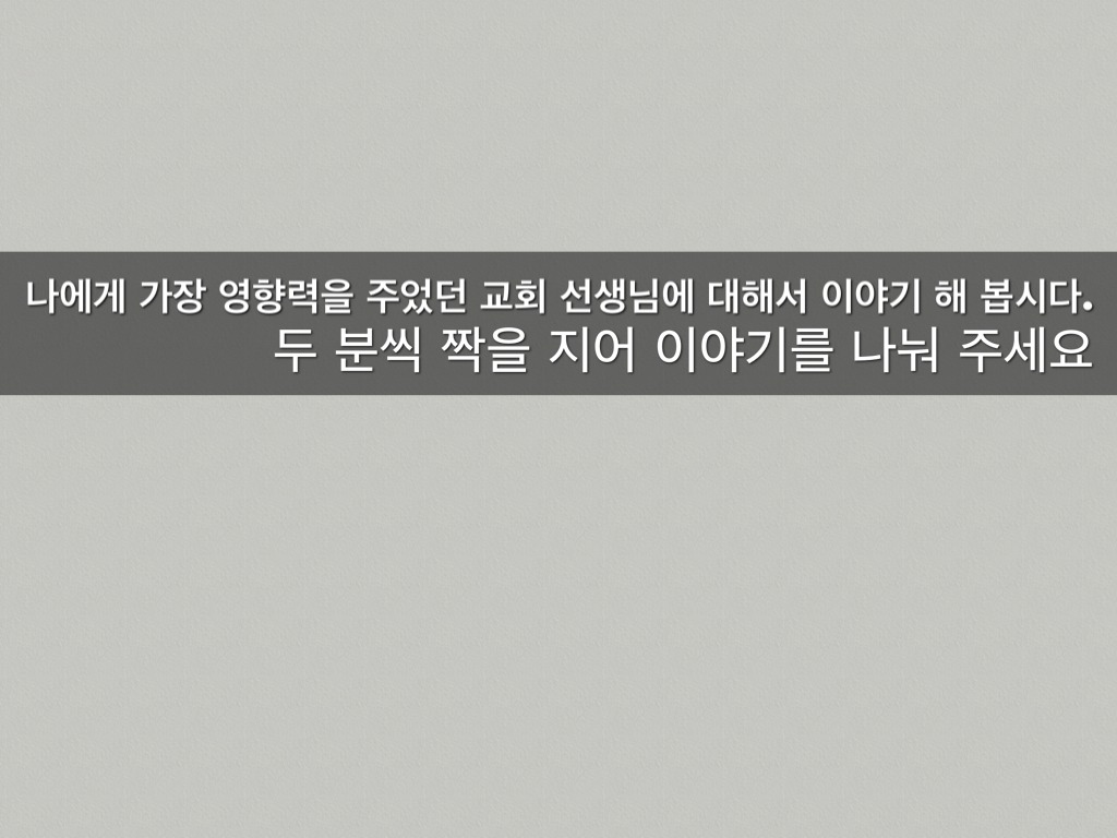 나에게 가장 영향력을 주었던 교회 선생님에 대해서 이야기 해 봅시다.