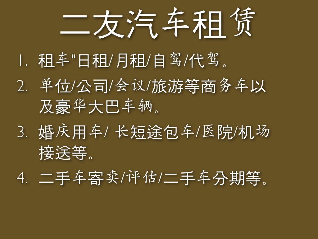 婚庆用车/ 长短途包车/医院/机场接送等。