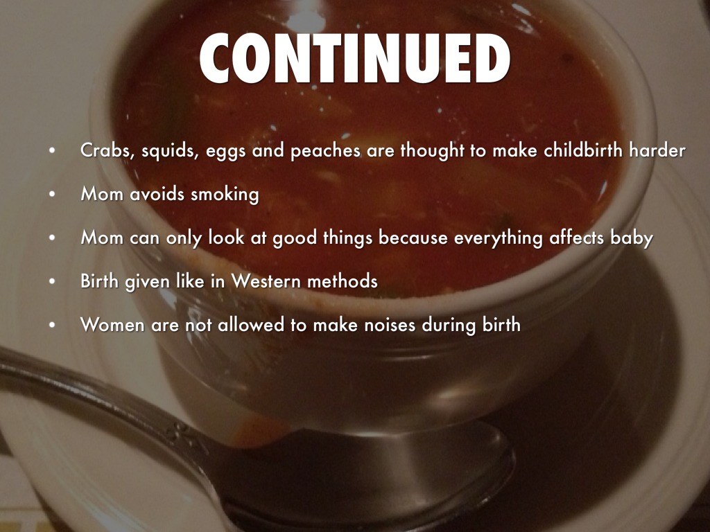 Crabs, squids, eggs and peaches are thought to make childbirth harder
