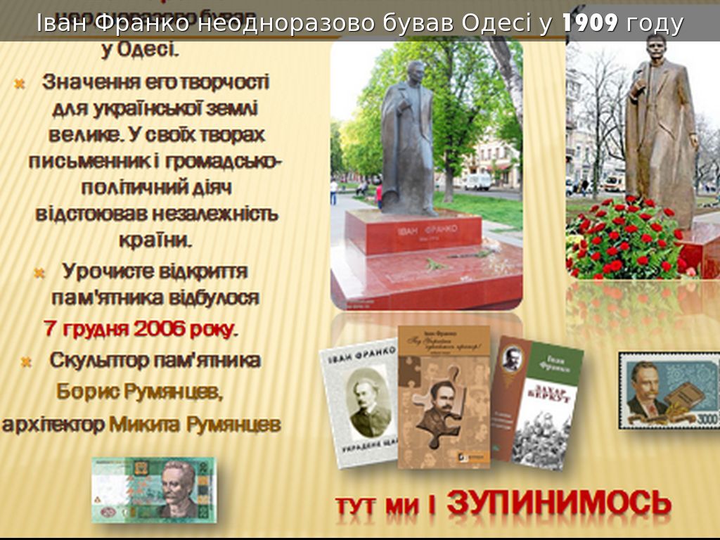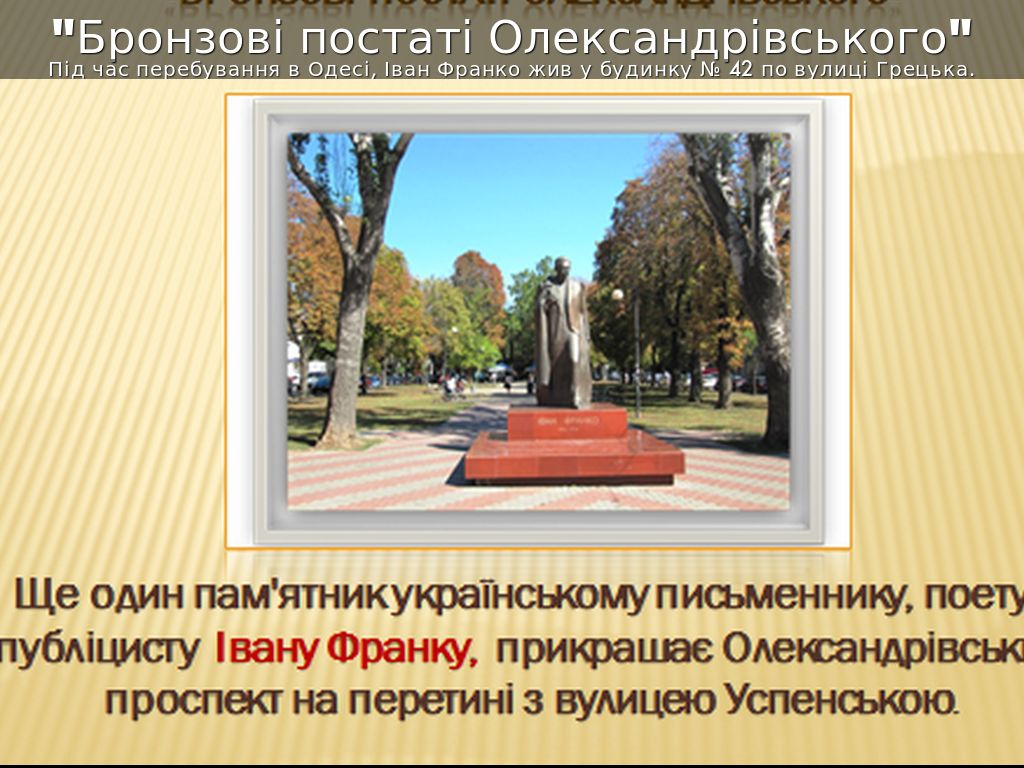 Під час перебування в Одесі, Іван Франко жив у будинку № 42 по вулиці Грецька.