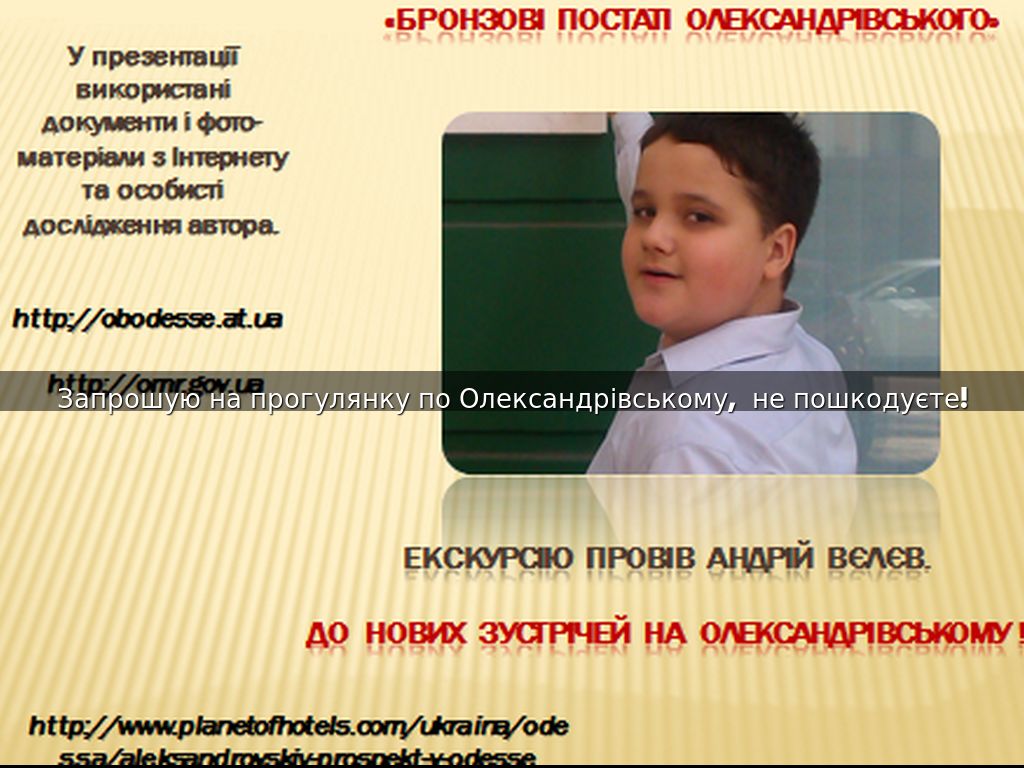 Запрошую на прогулянку по Олександрівському,  не пошкодуєте!