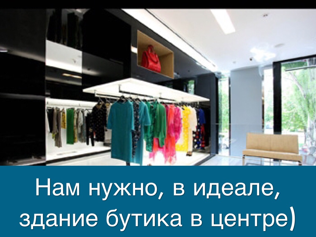 Нам нужно, в идеале, здание бутика в центре)