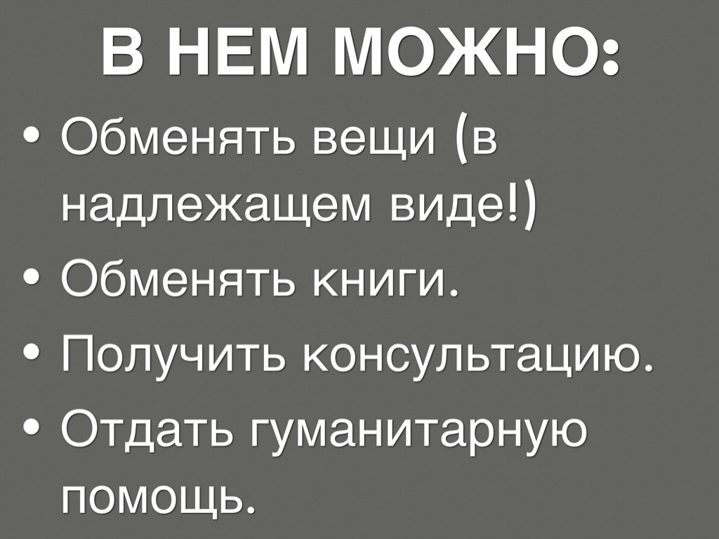 - Обменять вещи (в надлежащем виде!)