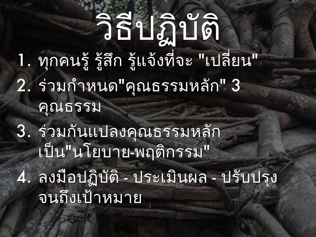 - ร่วมกันแปลงคุณธรรมหลักเป็น"นโยบาย-พฤติกรรม"
