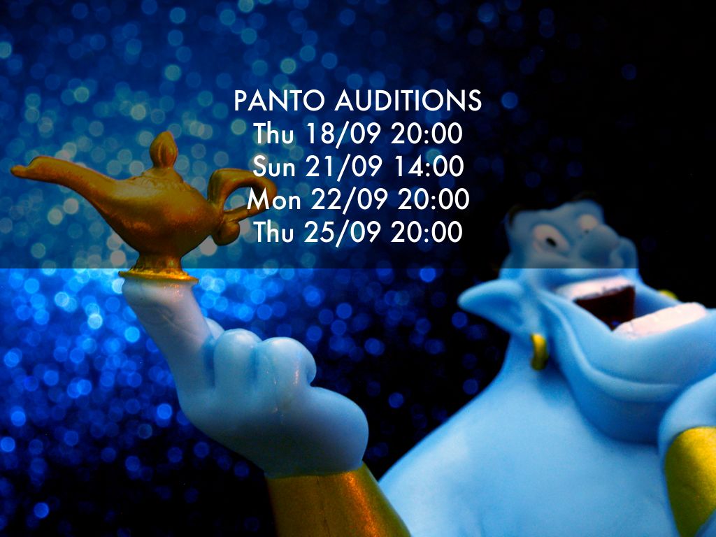 PANTO AUDITIONS Thu 18/09 20:00 Sun 21/09 14:00 Mon 22/09 20:00 Thu 25/09 20:00