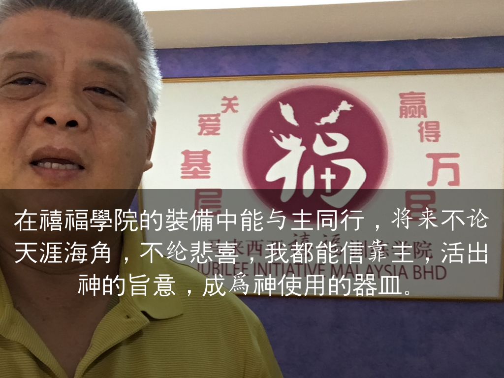 在禧福學院的裝備中能与主同行,将来不论天涯海角,不纶悲喜,我都能信靠主,活出神的旨意,成為神使用的器皿。