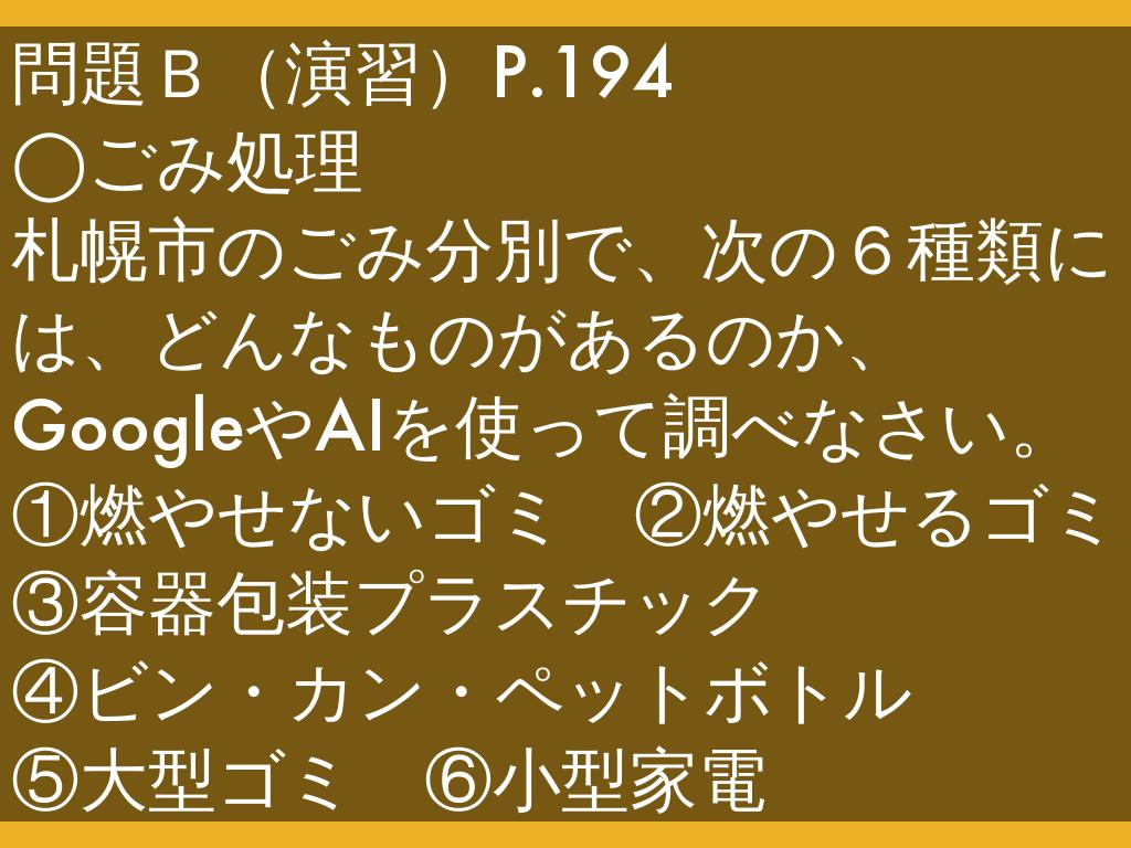 札幌市のごみ分別で、次の6種類には、どんなものがあるのか、GoogleやAIを使って調べなさい。