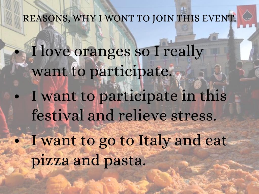 REASONS, WHY I WONT TO JOIN THIS EVENT.