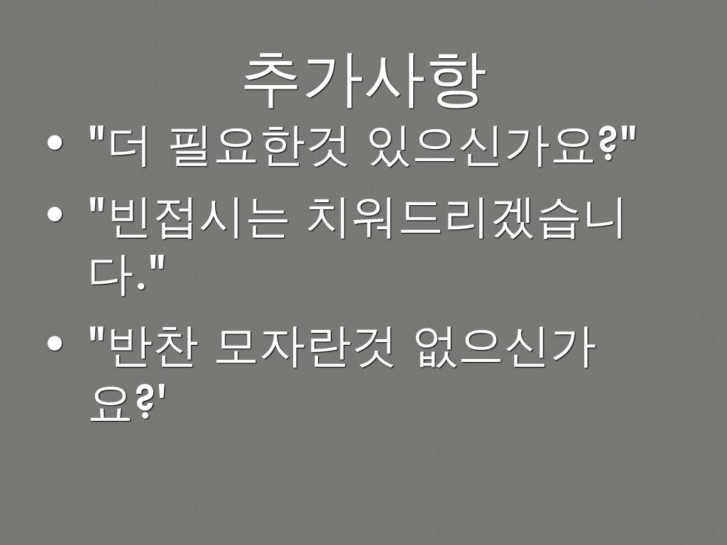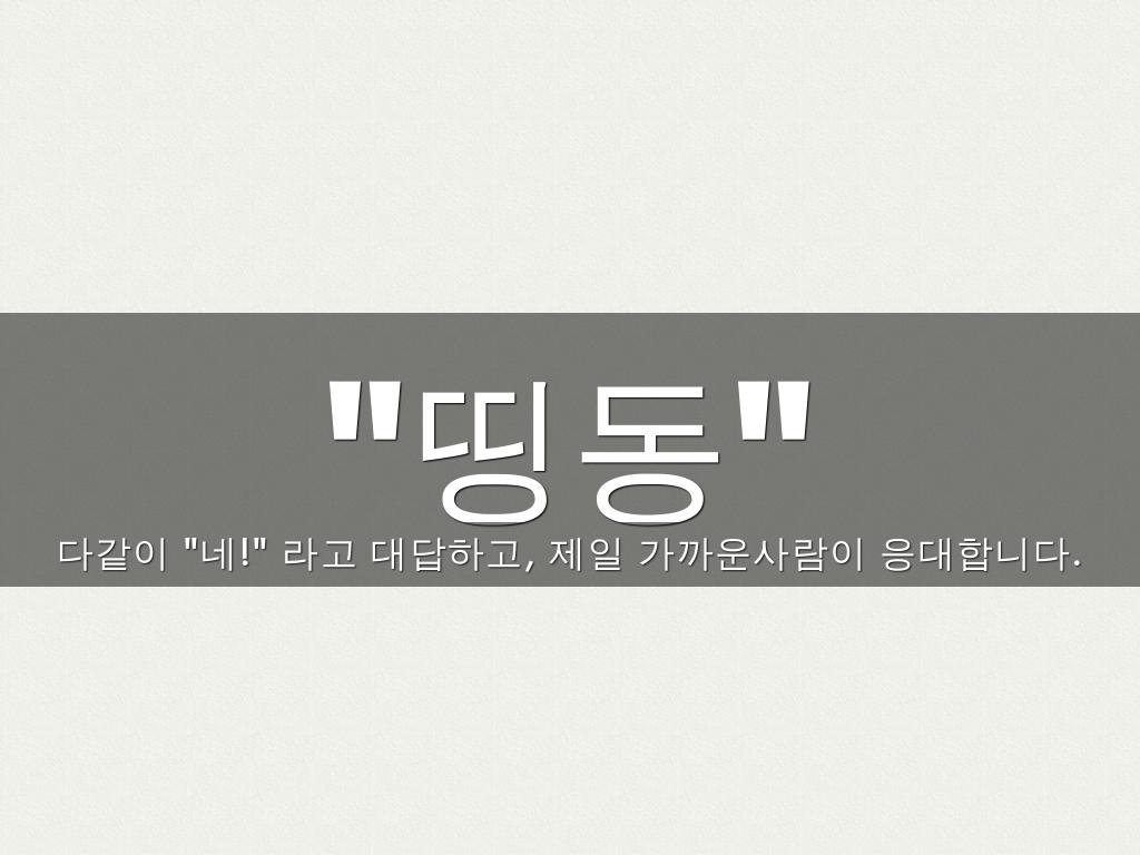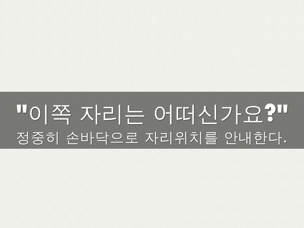 다같이 "네!" 라고 대답하고, 제일 가까운사람이 응대합니다.