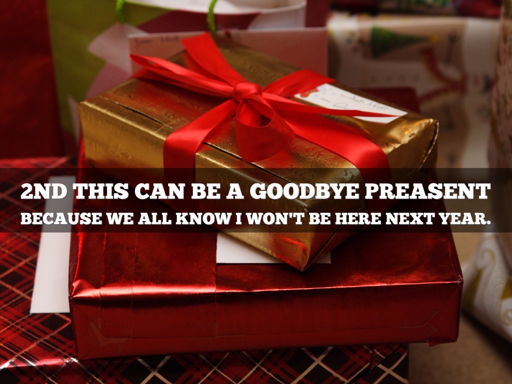 BECAUSE WE ALL KNOW I WON'T BE HERE NEXT YEAR.