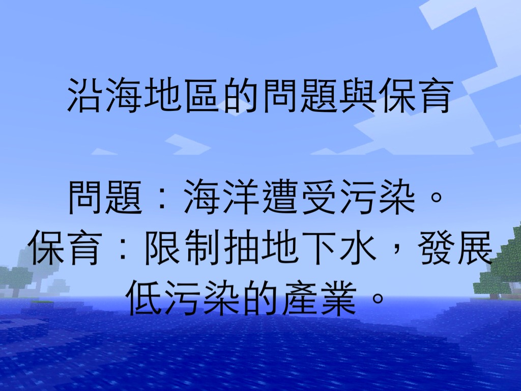 保育:限制抽地下水,發展低污染的產業。