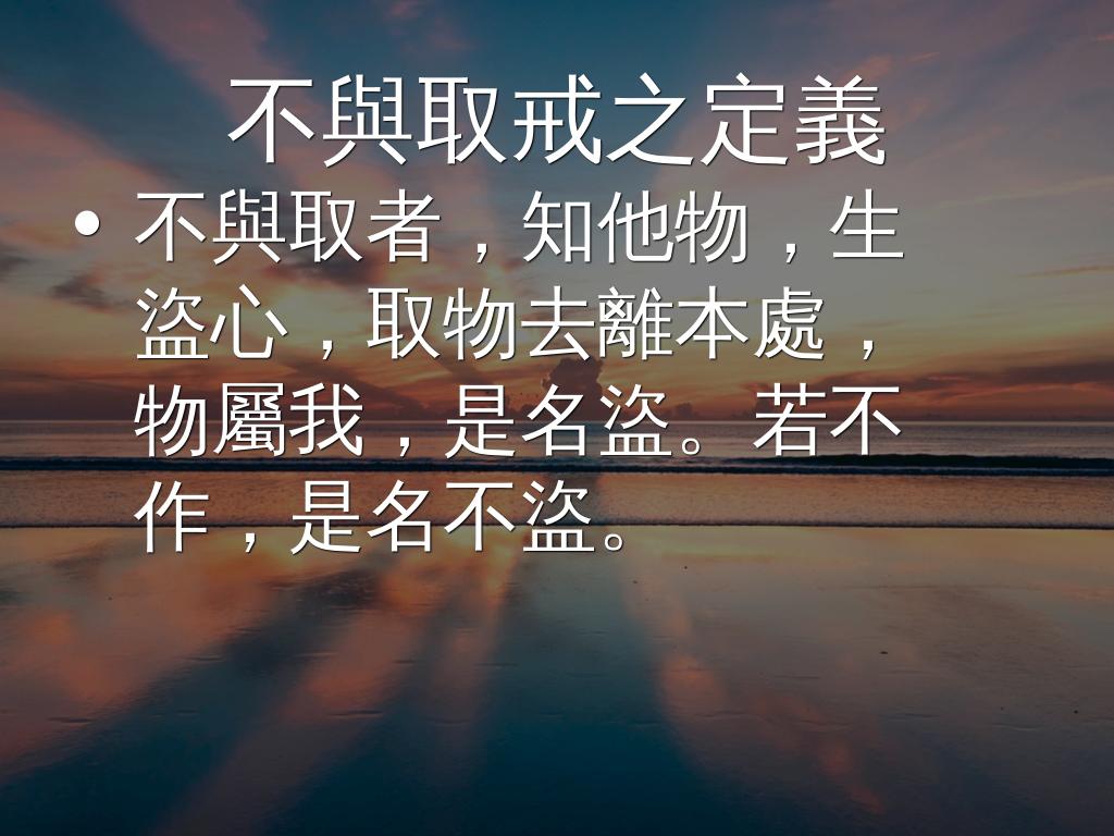 不與取者,知他物,生盜心,取物去離本處,物屬我,是名盜。若不作,是名不盜。