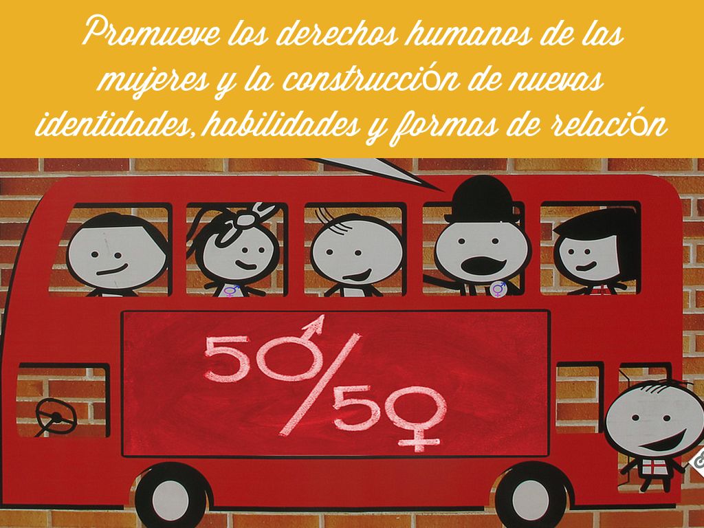 Promueve los derechos humanos de las mujeres y la construcción de nuevas identidades, habilidades y formas de relación