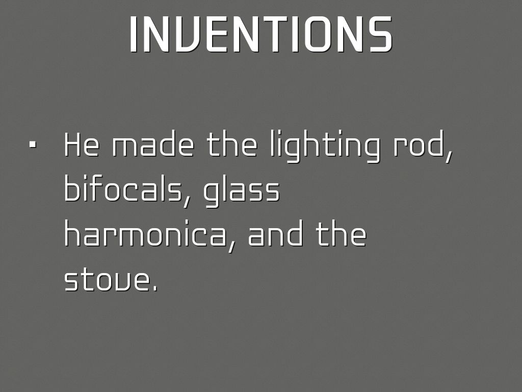 He made the lighting rod, bifocals, glass harmonica, and the stove.