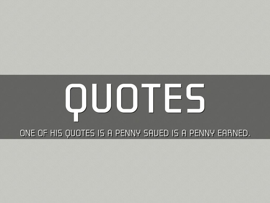 ONE OF HIS QUOTES IS A PENNY SAVED IS A PENNY EARNED.