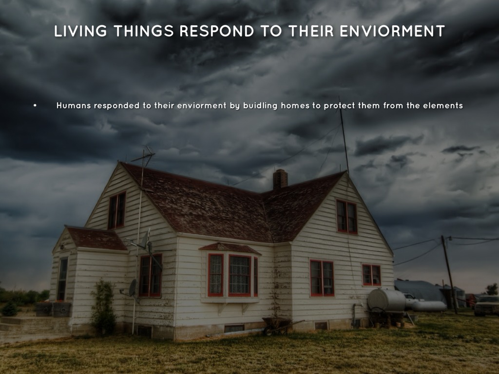 Humans responded to their enviorment by buidling homes to protect them from the elements