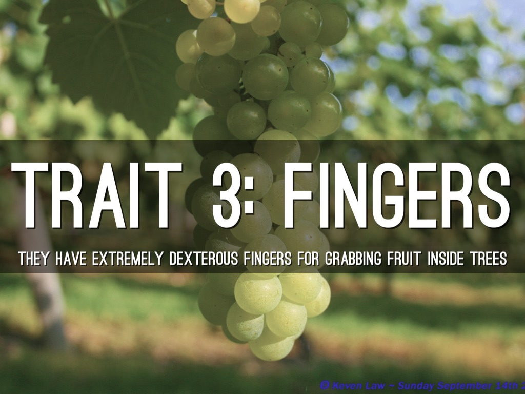 THEY HAVE EXTREMELY DEXTEROUS FINGERS FOR GRABBING FRUIT INSIDE TREES
