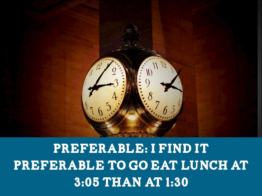 Preferable: I find it Preferable to go eat lunch at 3:05 than at 1:30