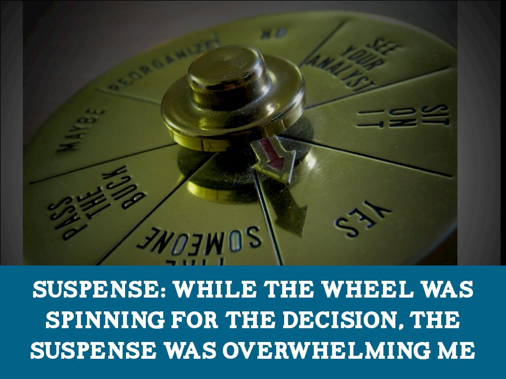 Suspense: while the wheel was spinning for the decision, the suspense was overwhelming me