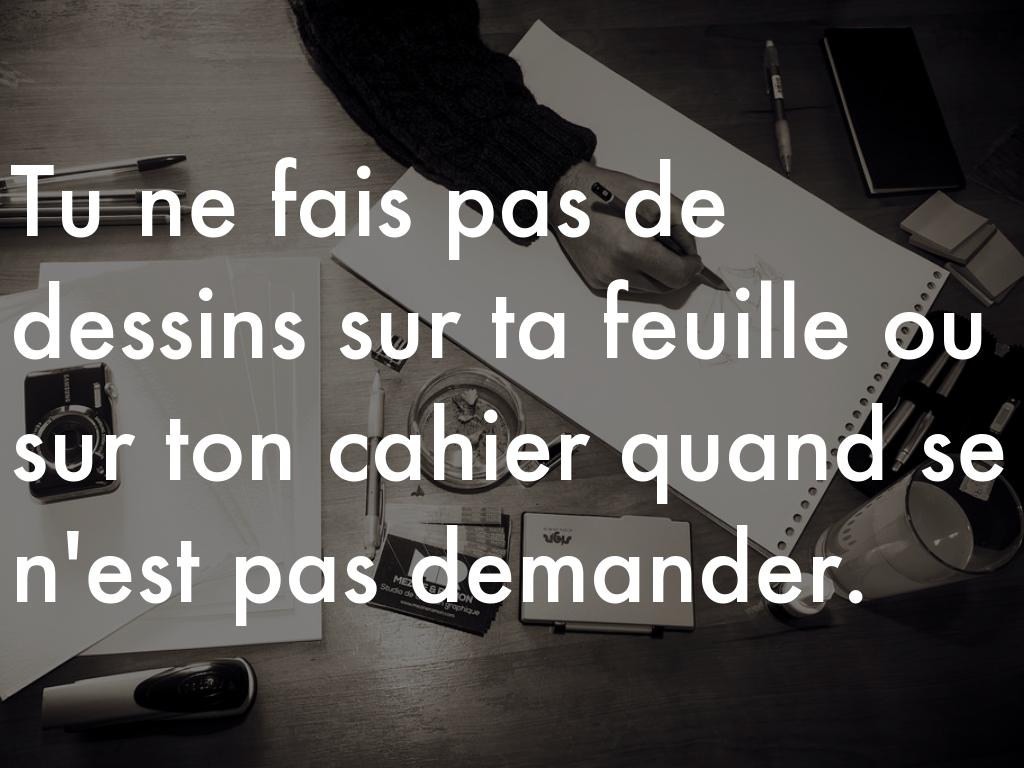 Tu ne fais pas de dessins sur ta feuille ou sur ton cahier quand se n'est pas demander.
