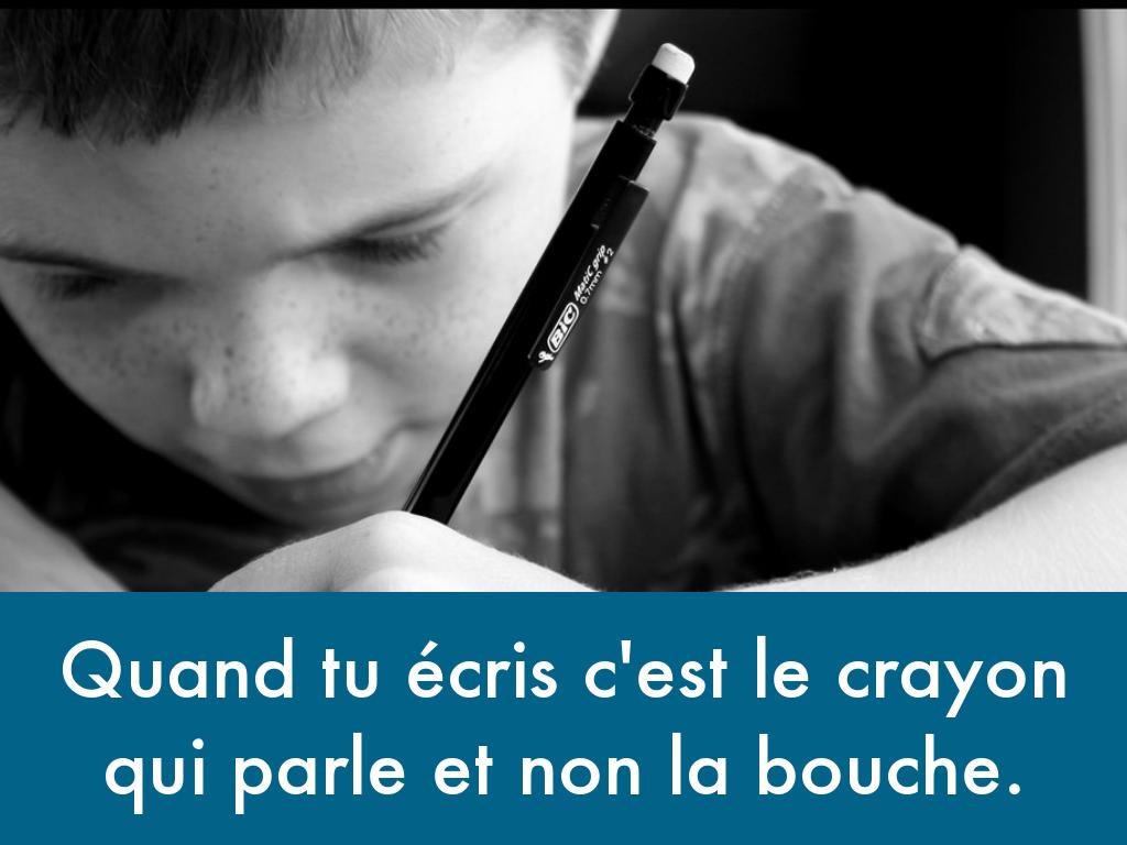 Quand tu écris c'est le crayon qui parle et non la bouche.