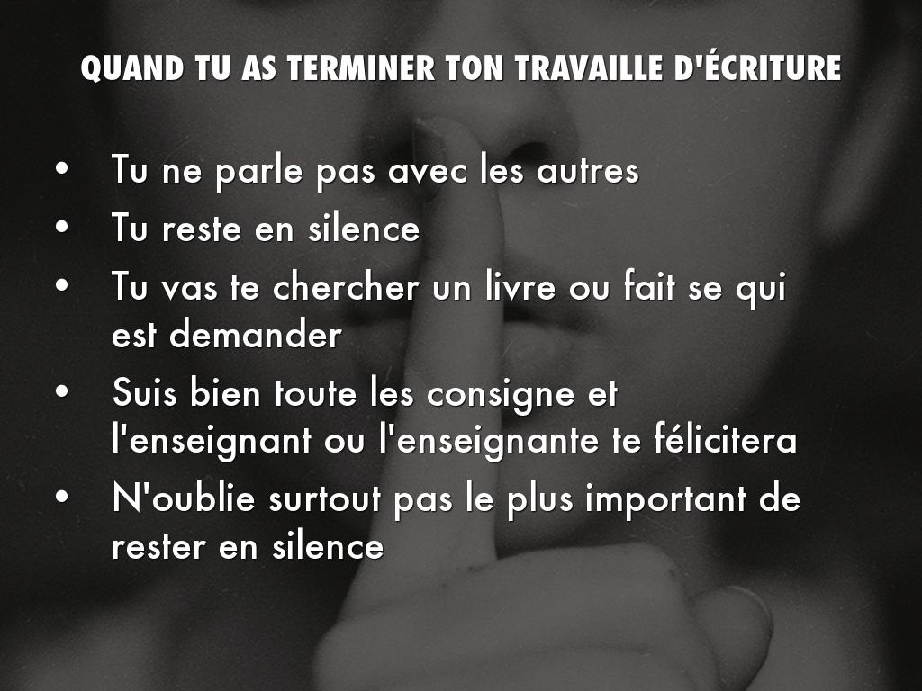 QUAND TU AS TERMINER TON TRAVAILLE D'ÉCRITURE