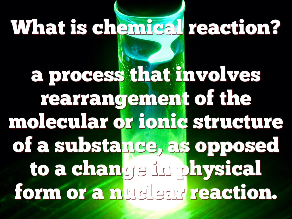 a process that involves rearrangement of the molecular or ionic structure of a substance, as opposed to a change in physical form or a nuclear reaction.