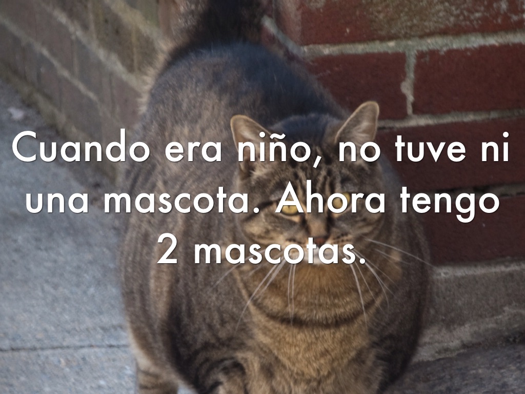 Cuando era niño, no tuve ni una mascota. Ahora tengo 2 mascotas.