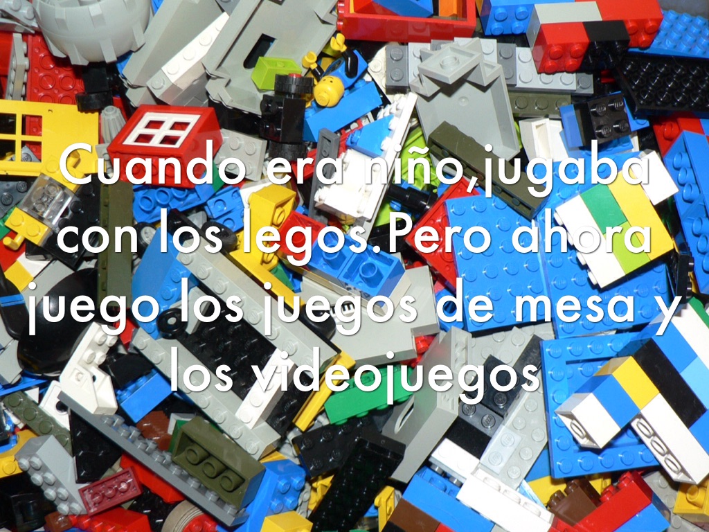 Cuando era niño,jugaba con los legos.Pero ahora juego los juegos de mesa y los videojuegos