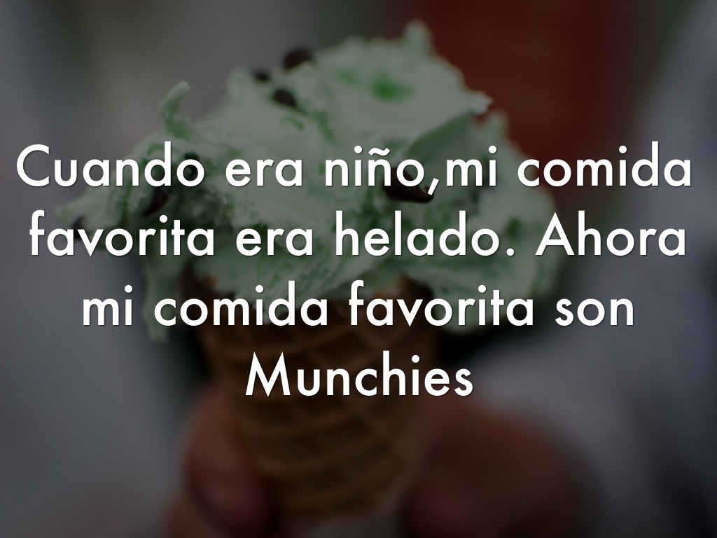 Cuando era niño,mi comida favorita era helado. Ahora mi comida favorita son Munchies