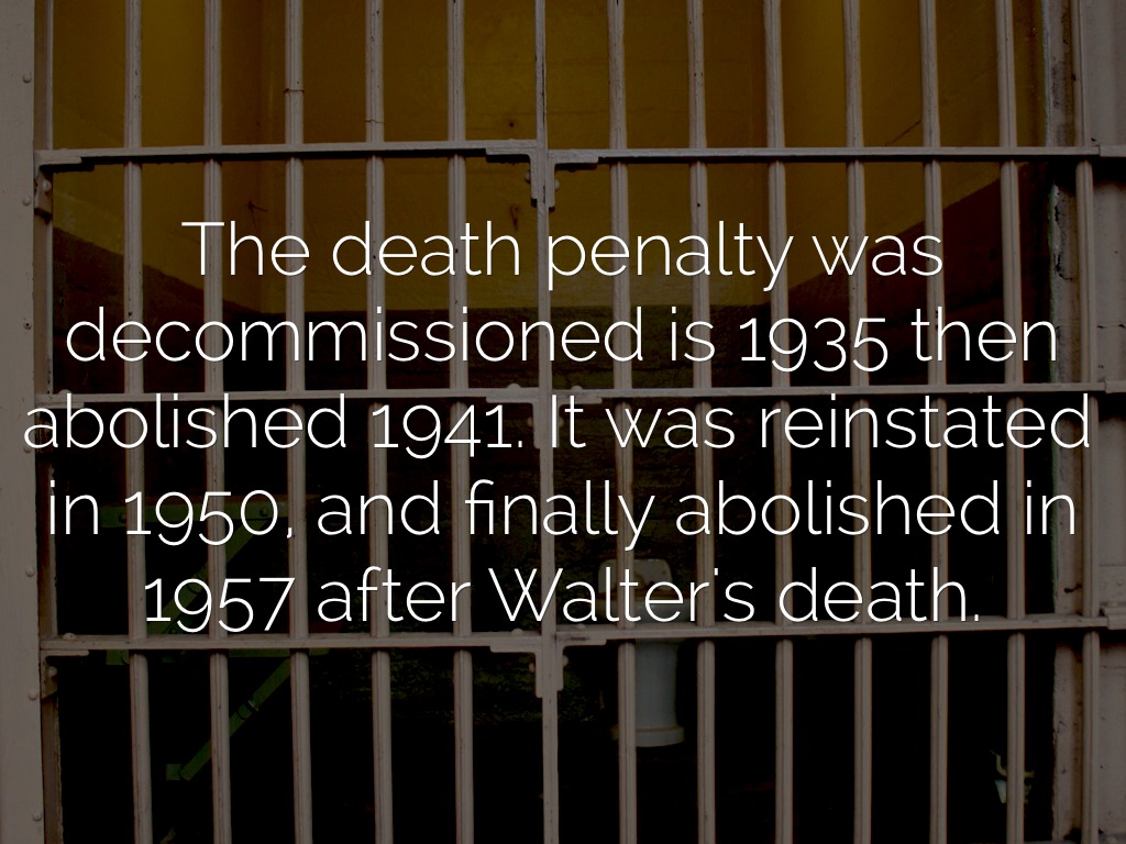 It is said that Walter did not break his neck when he was hung, but was slowly strangled. This, as well as suspicions of Walters innocence, brought about the abolition.