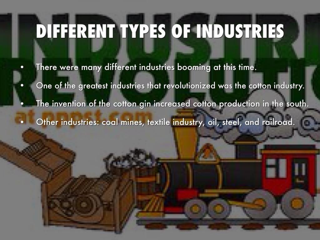 Other industries: coal mines, textile industry, oil, steel, and railroad.