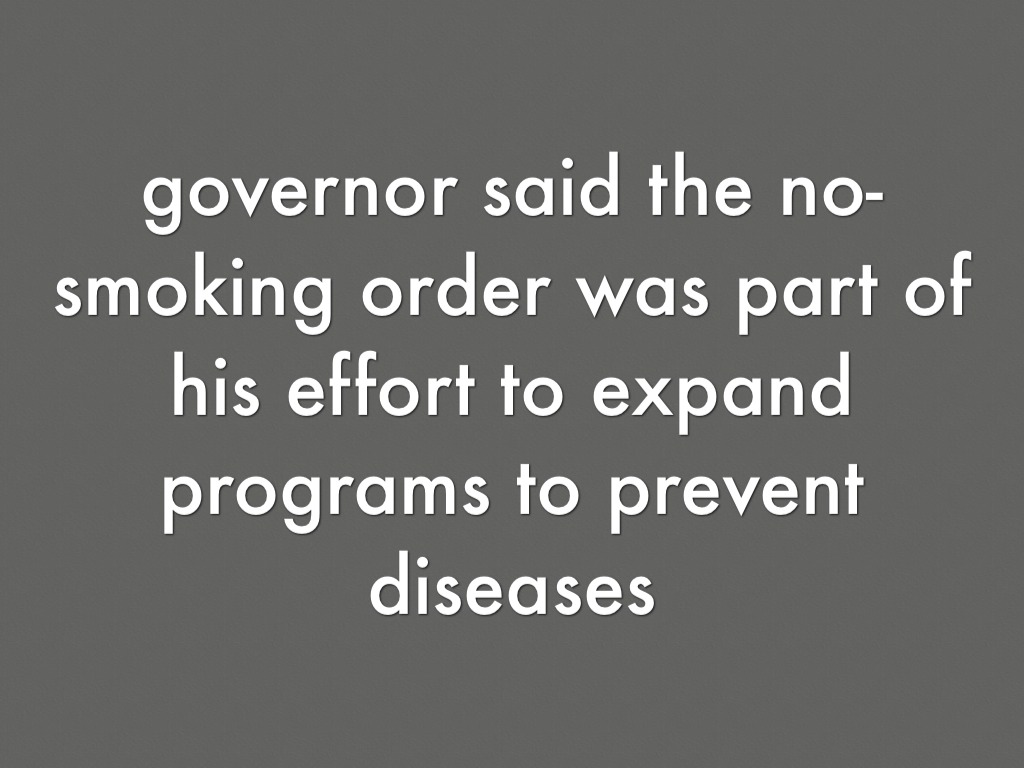 governor said the no-smoking order was part of his effort to expand programs to prevent diseases