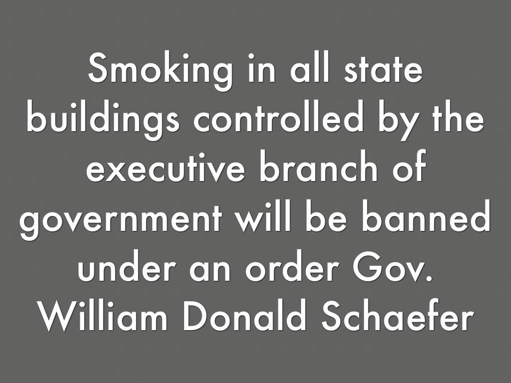 Smoking in all state buildings controlled by the executive branch of government will be banned under an order Gov. William Donald Schaefer