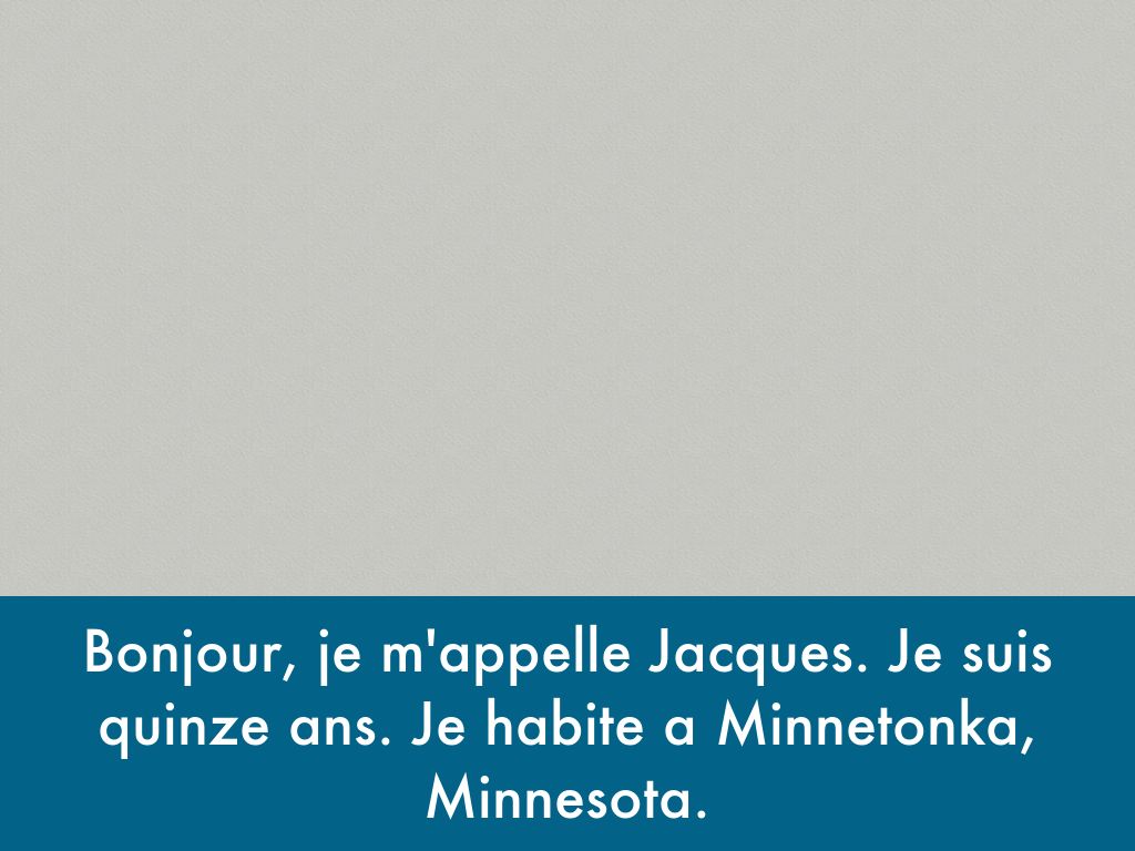 Bonjour, je m'appelle Jacques. Je suis quinze ans. Je habite a Minnetonka, Minnesota.